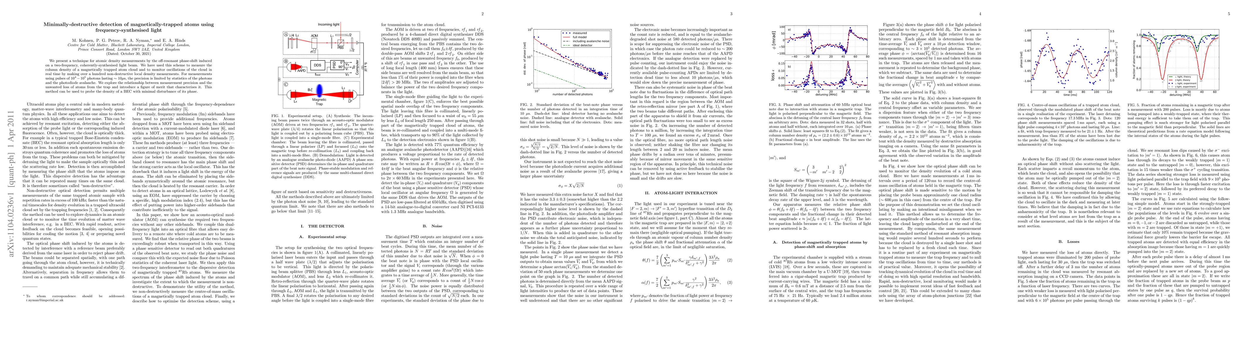 We present a technique for atomic density measurements by the off-resonant phase-shift induced on a two-frequency, coherently-synthesised light beam. We have used this scheme to measure the column density of a magnetically trapped atom cloud and to monitor oscillations of the cloud in real time by making over a hundred non-destructive local density measurments. For measurements using pulses of 10,000-100,000 photons lasting ~10 microsecond, the precision is limited by statistics of the photons and the photodiode avalanche. We explore the relationship between measurement precision and the unwanted loss of atoms from the trap and introduce a figure of merit that characterises it. This method can be used to probe the density of a BEC with minimal disturbance of its phase.