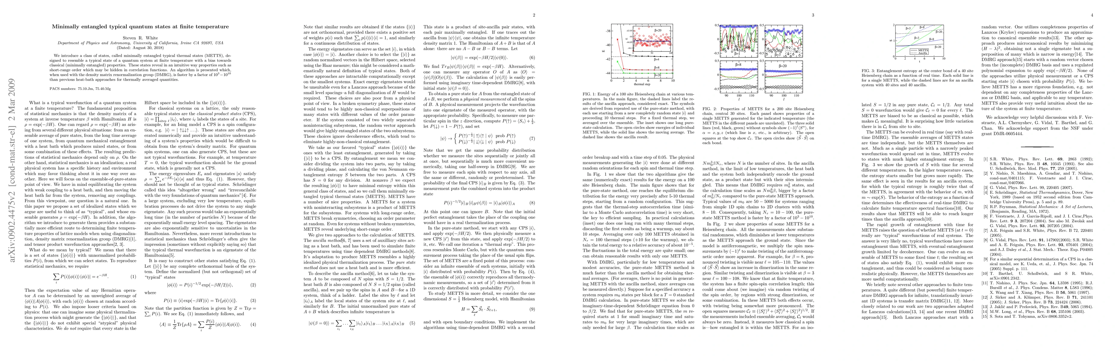 This paper introduces minimally entangled typical thermal states (METTS) that mimic typical quantum states at finite temperature while exhibiting classical properties. An efficient algorithm for calculating thermally averaged quantities using DMRG is presented, significantly outperforming previous heat-bath methods.