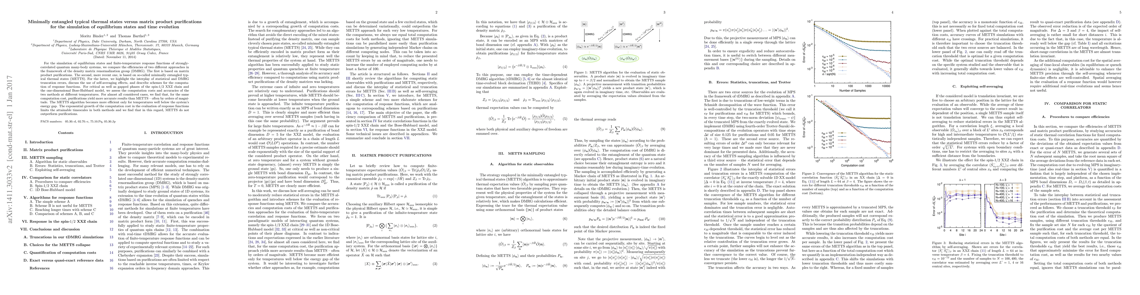 A study comparing two methods for simulating equilibrium states and time evolution in quantum many-body systems finds that matrix product purifications outperform minimally entangled typical thermal states, especially at higher temperatures.