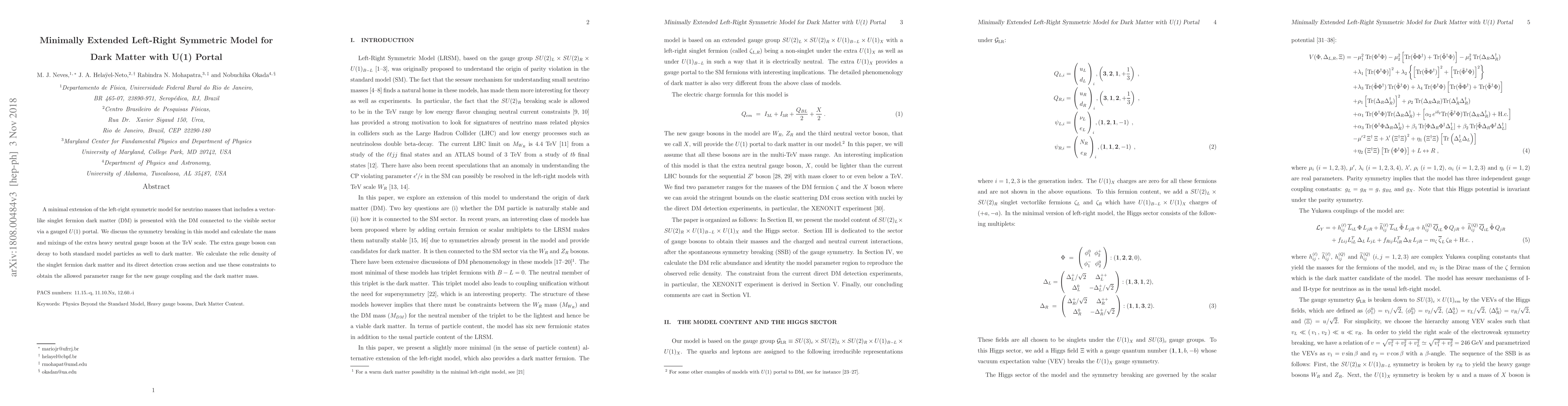 This paper proposes a minimally extended left-right symmetric model for dark matter incorporating a U(1) portal, featuring a vector-like singlet fermion. It calculates the relic density and direct detection cross section to determine the allowed parameter range for the new gauge coupling and dark matter mass.