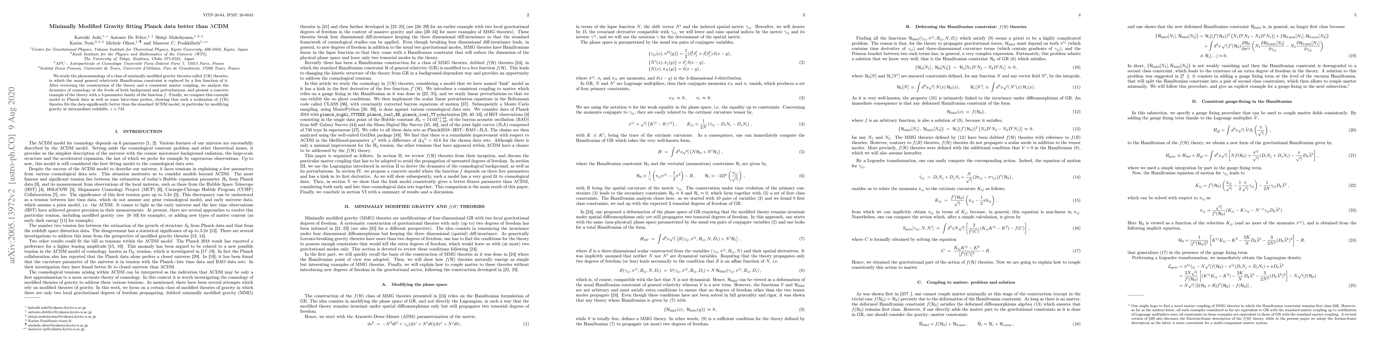 We study the phenomenology of a class of minimally modified gravity theories called $f(\mathcal{H})$ theories, in which the usual general relativistic Hamiltonian constraint is replaced by a free function of it. After reviewing the construction of the theory and a consistent matter coupling, we analyze the dynamics of cosmology at the levels of both background and perturbations, and present a concrete example of the theory with a $3$-parameter family of the function $f$. Finally, we compare this example model to Planck data as well as some later-time probes, showing that such a realization of $f(\mathcal{H})$ theories fits the data significantly better than the standard $\Lambda$CDM model, in particular by modifying gravity at intermediate redshifts, $z\simeq743$.