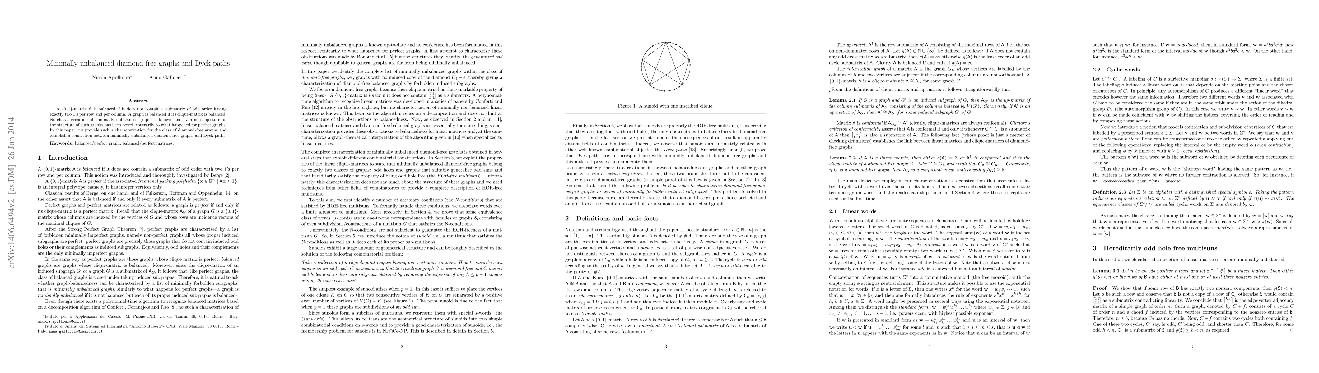 Researchers provide a characterization for diamond-free graphs that are minimally unbalanced, linking them to Dyck-paths, offering insight into the structure of these complex networks.