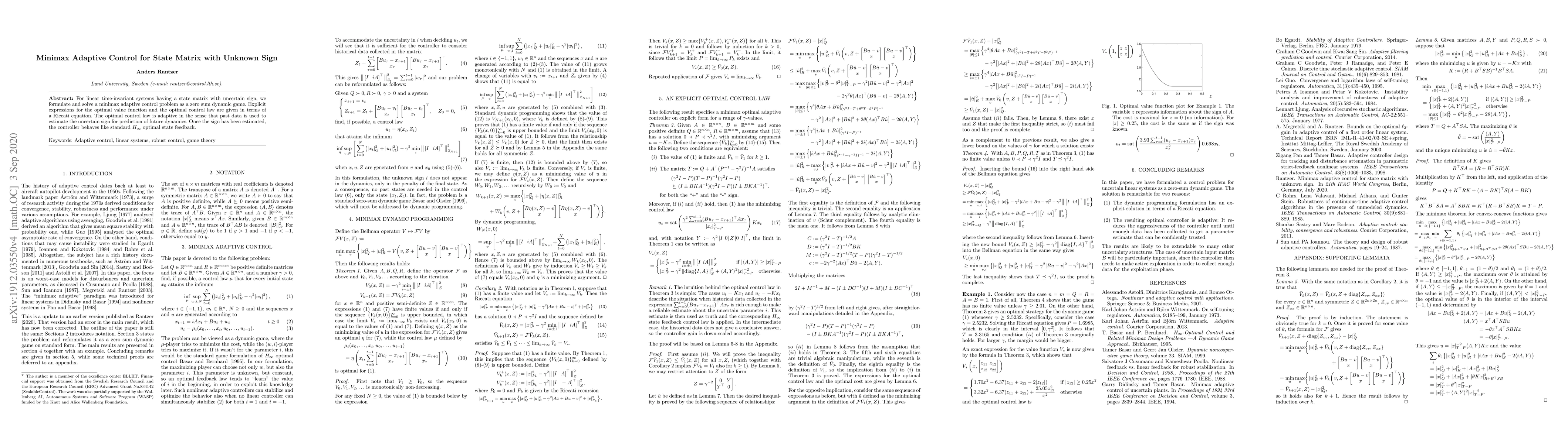 Researchers develop an adaptive control method for linear systems with uncertain signs, using a zero-sum dynamic game to find optimal control laws that adapt based on past data.