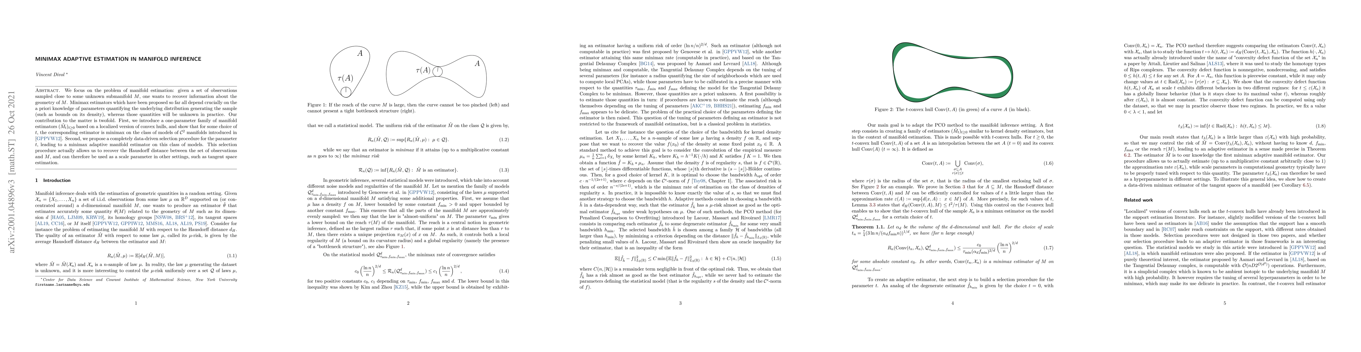 This paper introduces a new family of adaptive manifold estimators based on localized convex hulls, demonstrating minimax optimality for certain parameter choices. It also proposes a data-driven selection method for the parameter, achieving minimax adaptive estimation and recovering the Hausdorff distance between observations and the underlying manifold.