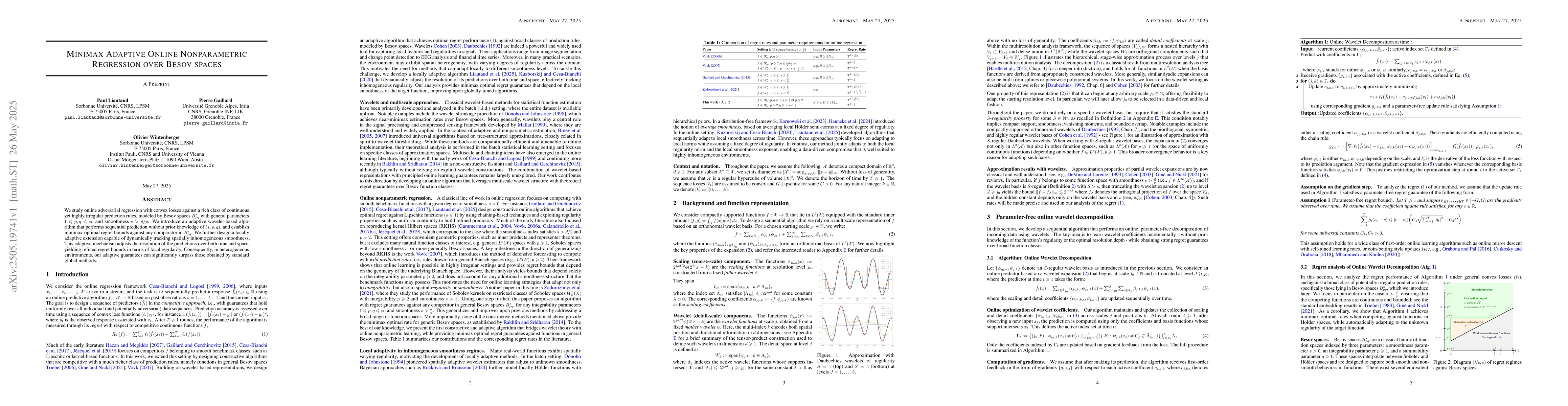 The research introduces an adaptive wavelet-based algorithm for online adversarial regression with convex losses, targeting prediction rules in Besov spaces B_{pq}^s with unspecified parameters (s, p, q).