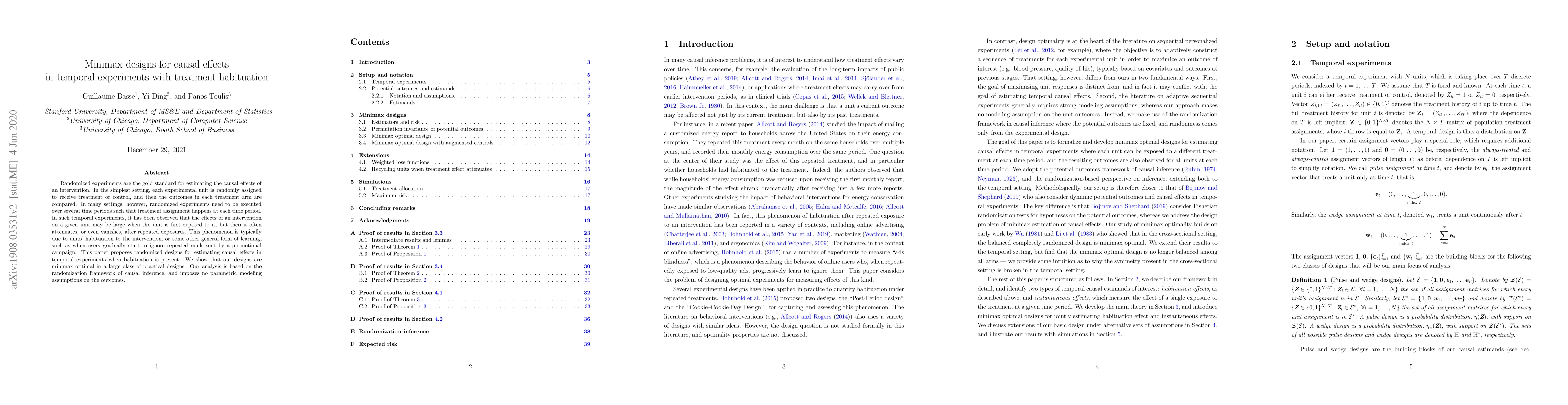 Researchers developed minimax designs to estimate causal effects in temporal experiments where treatment habituation occurs, without imposing parametric modeling assumptions on outcomes.