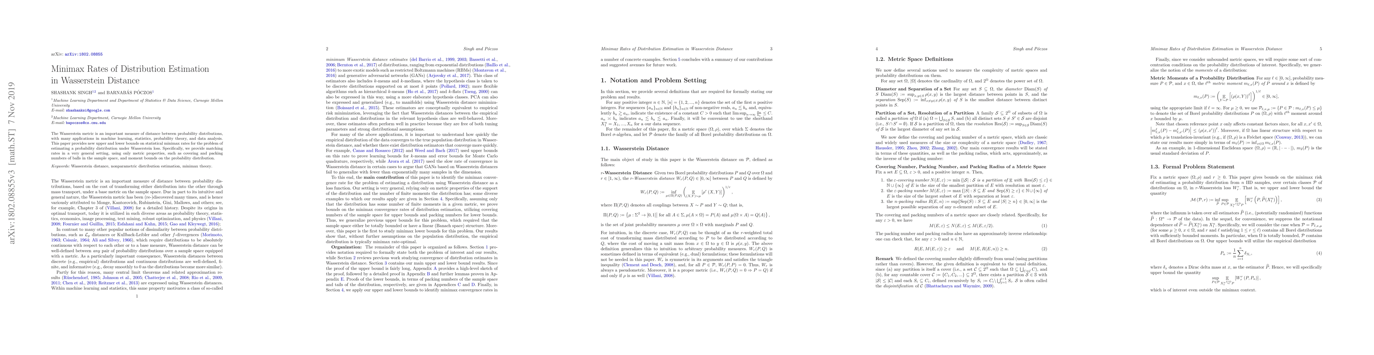 This paper establishes upper and lower bounds for minimax rates in estimating probability distributions under Wasserstein distance, relying on metric properties of the sample space and weak moment assumptions. The findings have implications for machine learning, statistics, and data analysis.