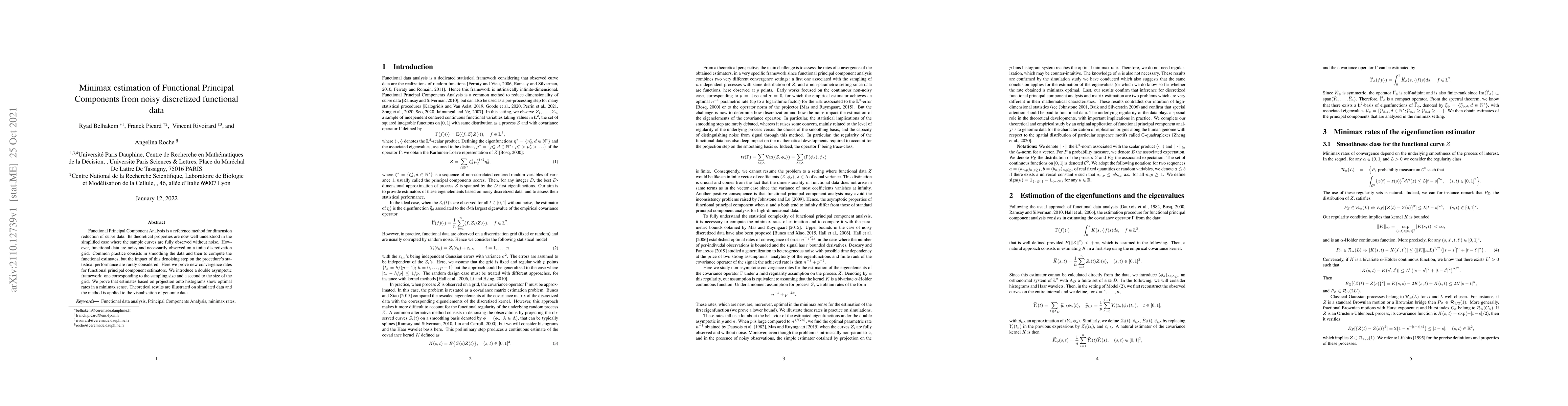This paper develops new convergence rates for functional principal component estimators in noisy, discretized functional data, introducing a double asymptotic framework. It shows that estimates based on projection onto histograms achieve optimal minimax rates, and demonstrates the method's effectiveness through simulations and genomic data analysis.