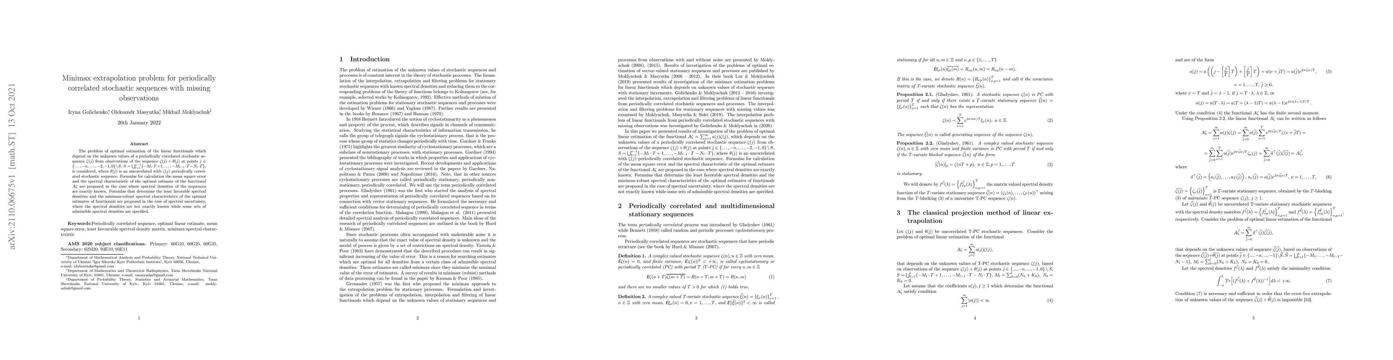 The problem of optimal estimation of the linear functionals which depend on the unknown values of a periodically correlated stochastic sequence ${\zeta}(j)$ from observations of the sequence ${\zeta}(j)+{\theta}(j)$ at points $j\in\{\dots,-n,\dots,-2,-1,0\}\setminus S$, $S=\bigcup _{l=1}^{s-1}\{-M_l\cdot T+1,\dots,-M_{l-1}\cdot T-N_{l}\cdot T\}$, is considered, where ${\theta}(j)$ is an uncorrelated with ${\zeta}(j)$ periodically correlated stochastic sequence. Formulas for calculation the mean square error and the spectral characteristic of the optimal estimate of the functional $A\zeta$ are proposed in the case where spectral densities of the sequences are exactly known. Formulas that determine the least favorable spectral densities and the minimax-robust spectral characteristics of the optimal estimates of functionals are proposed in the case of spectral uncertainty, where the spectral densities are not exactly known while some sets of admissible spectral densities are specified.
