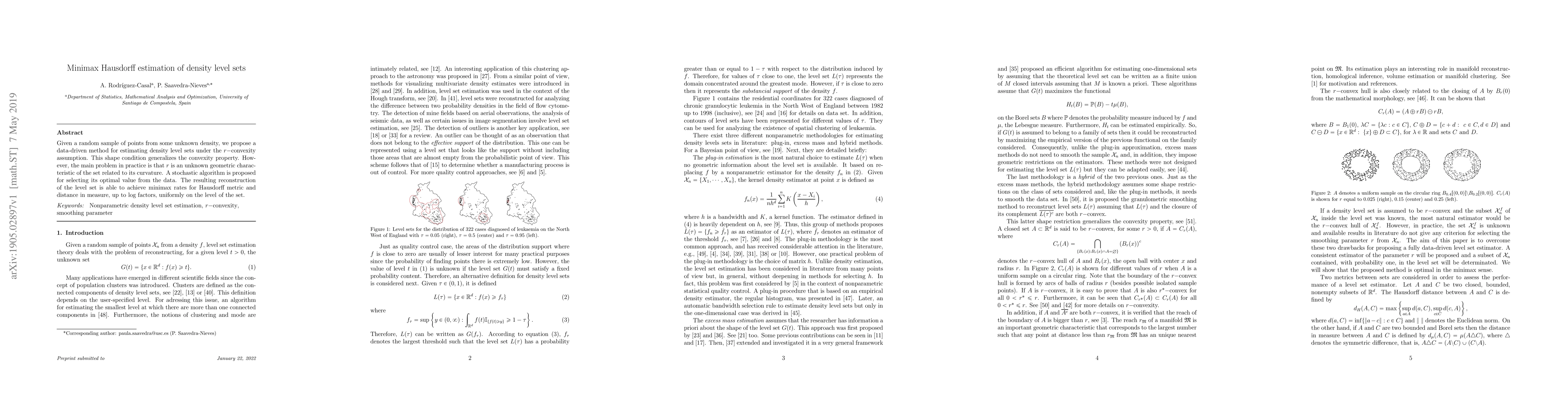 This paper proposes a data-driven method for estimating density level sets under the r-convexity assumption, introducing a stochastic algorithm to determine the optimal value of r. The method achieves minimax rates for Hausdorff metric and distance in measure, ensuring accurate reconstruction of the level set.