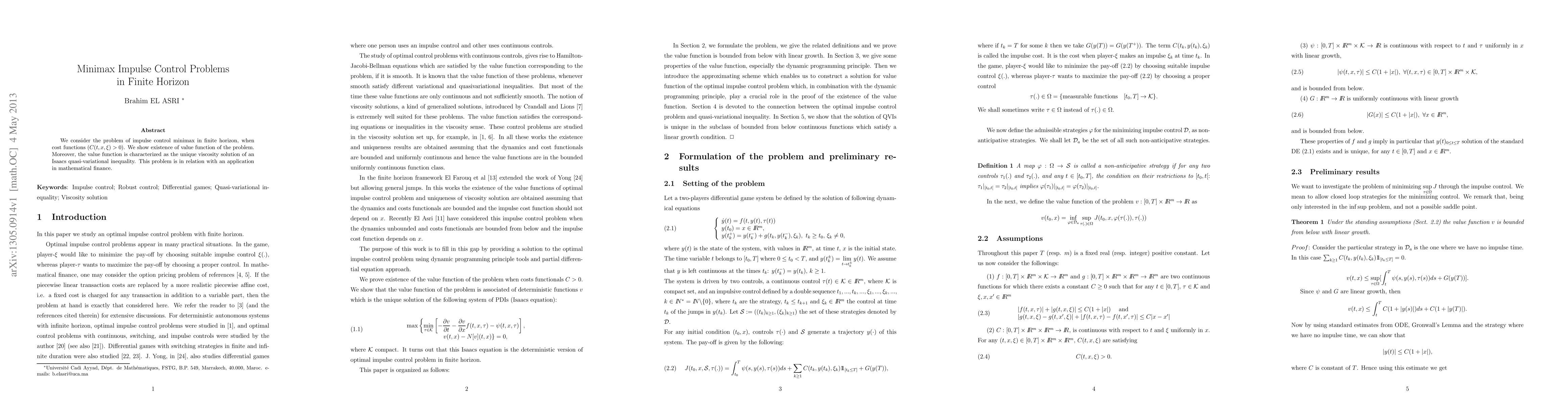This paper investigates minimax impulse control problems in finite horizons with positive cost functions, proving the existence of a value function. The value function is identified as the unique viscosity solution to an Isaacs quasi-variational inequality, with implications for mathematical finance applications.