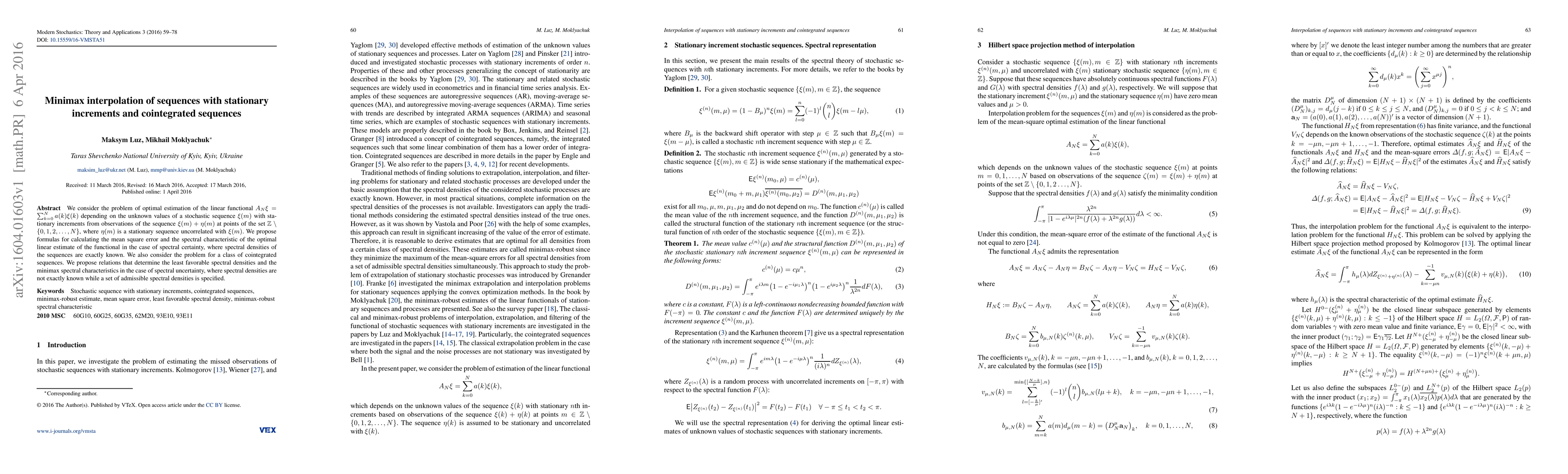 This paper presents methods for optimal estimation of linear functionals of stochastic sequences with stationary increments and cointegrated sequences. It offers formulas for mean square error and spectral characteristics under spectral certainty, where densities are known. In cases of spectral uncertainty, the paper provides relations for least favorable spectral densities and minimax characteristics, given a set of admissible densities.