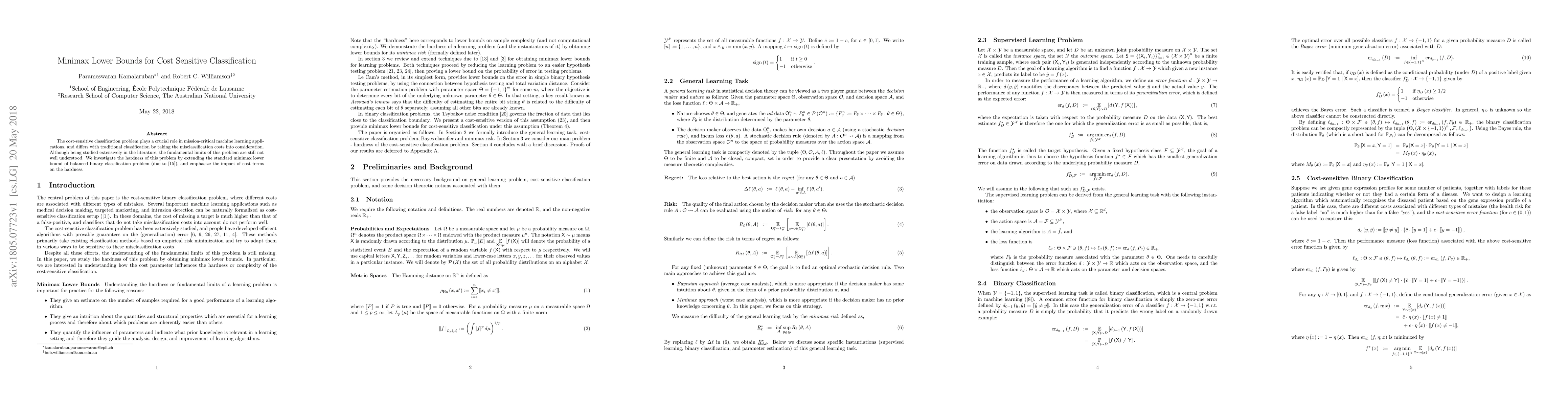 This paper explores the fundamental limits of cost-sensitive classification, extending the minimax lower bound from balanced binary classification to account for misclassification costs. It highlights how cost terms influence the difficulty of solving this problem in mission-critical applications.