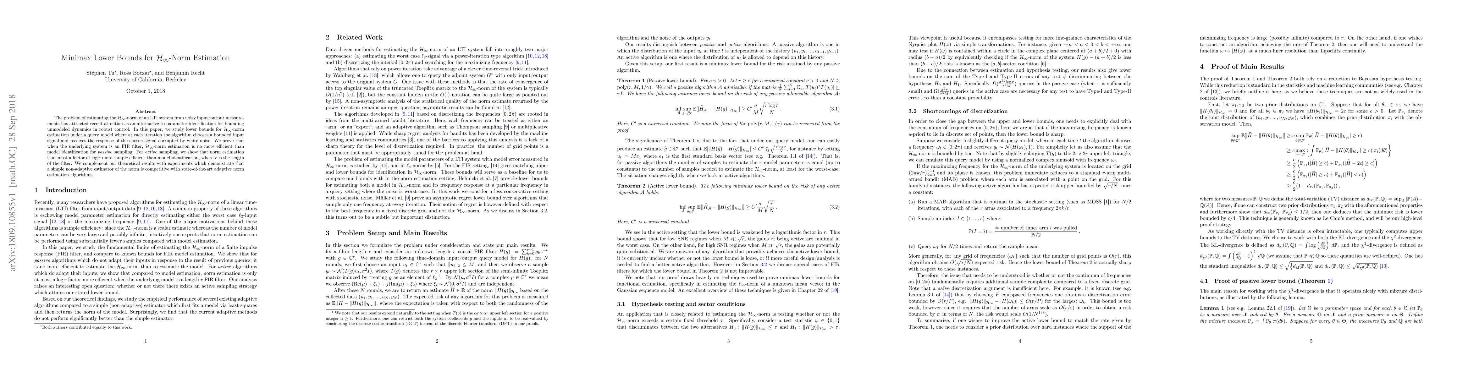 The problem of estimating the $\mathcal{H}_\infty$-norm of an LTI system from noisy input/output measurements has attracted recent attention as an alternative to parameter identification for bounding unmodeled dynamics in robust control. In this paper, we study lower bounds for $\mathcal{H}_\infty$-norm estimation under a query model where at each iteration the algorithm chooses a bounded input signal and receives the response of the chosen signal corrupted by white noise. We prove that when the underlying system is an FIR filter, $\mathcal{H}_\infty$-norm estimation is no more efficient than model identification for passive sampling. For active sampling, we show that norm estimation is at most a factor of $\log{r}$ more sample efficient than model identification, where $r$ is the length of the filter. We complement our theoretical results with experiments which demonstrate that a simple non-adaptive estimator of the norm is competitive with state-of-the-art adaptive norm estimation algorithms.