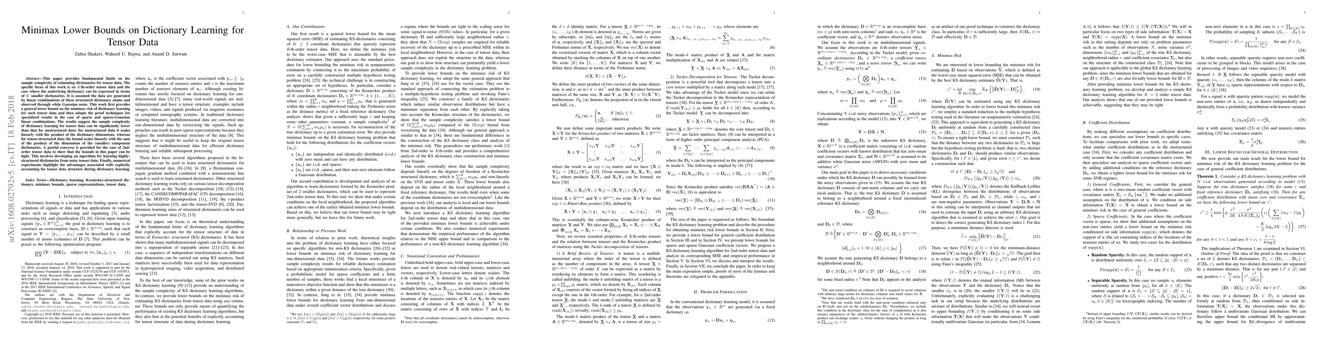 This paper establishes fundamental lower bounds on the sample complexity for estimating dictionaries for $K$th-order tensor data, showing that structured tensor data can be learned with significantly fewer samples compared to unstructured data. It also provides a partial converse and numerical experiments demonstrating the benefits of leveraging tensor data structure in dictionary learning.