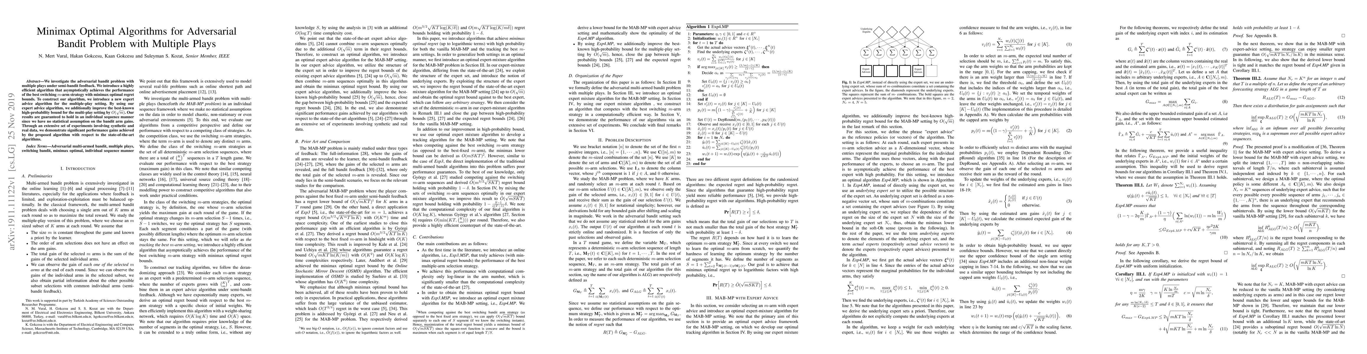 This paper proposes an efficient algorithm for the adversarial bandit problem with multiple plays, achieving minimax optimal regret bounds. The algorithm improves the high-probability regret bound by $O(\sqrt{m})$ and demonstrates significant performance gains over state-of-the-art methods in both synthetic and real data experiments.