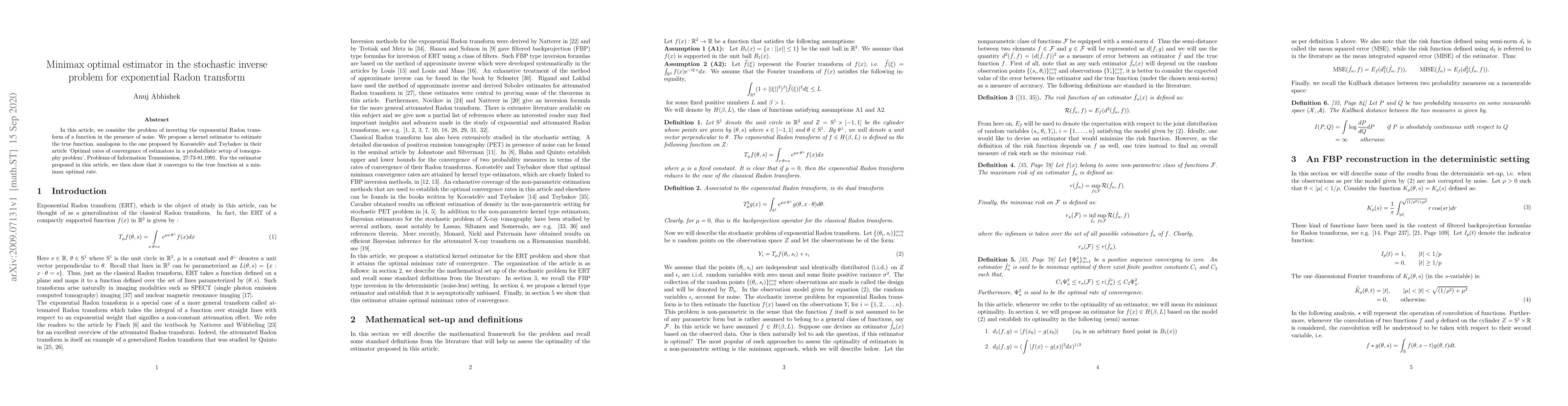 A minimax optimal estimator is proposed for inverting the exponential Radon transform with noise, achieving convergence to the true function at a rate comparable to existing probabilistic setups of tomography problems.