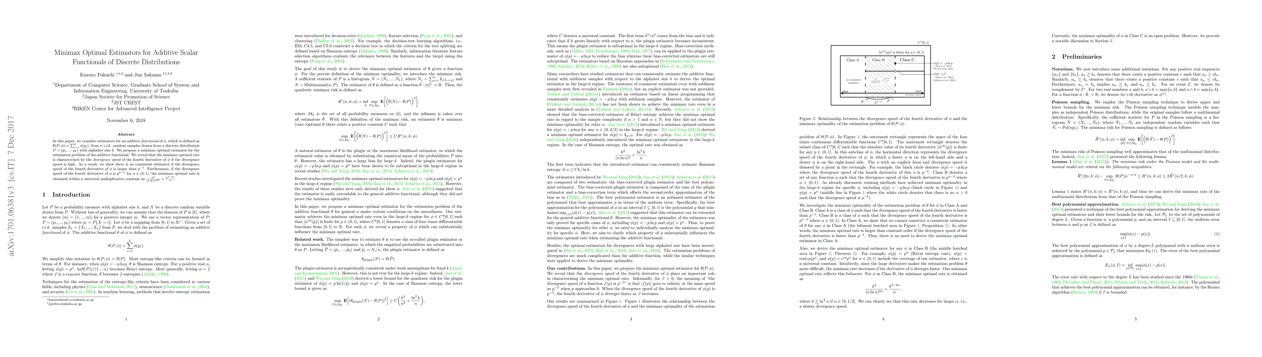 This paper proposes a minimax optimal estimator for estimating an additive functional of a discrete distribution based on i.i.d. samples. It establishes that the optimal rate of estimation depends on the divergence speed of the fourth derivative of the functional, showing no consistent estimator exists if this speed exceeds a certain threshold.