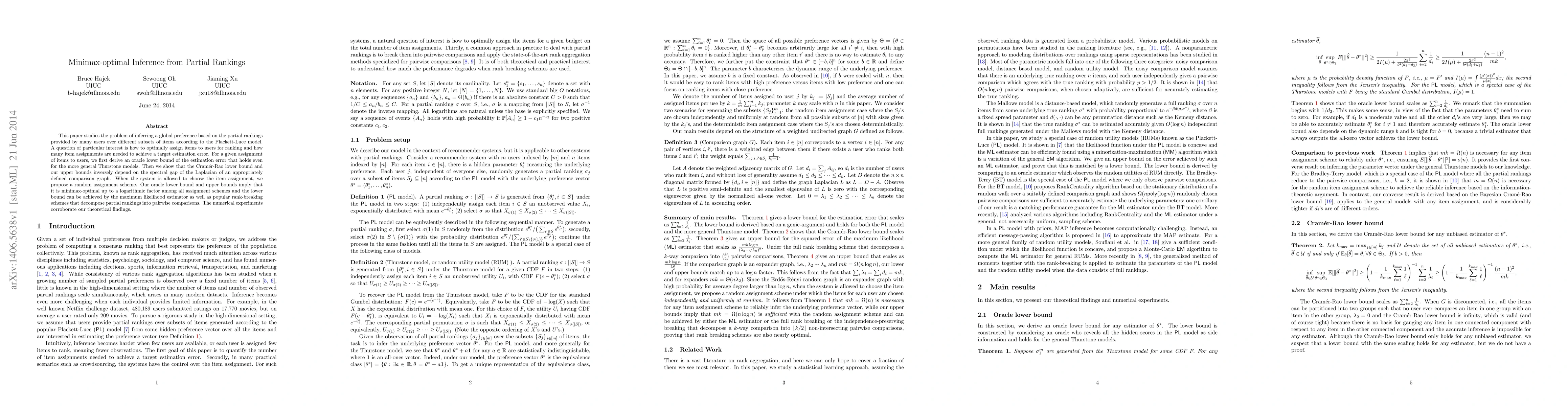 This paper investigates optimal inference from partial rankings under the Plackett-Luce model, deriving bounds for estimation error and proposing a minimax-optimal random assignment scheme that achieves near-optimal performance, validated by numerical experiments.