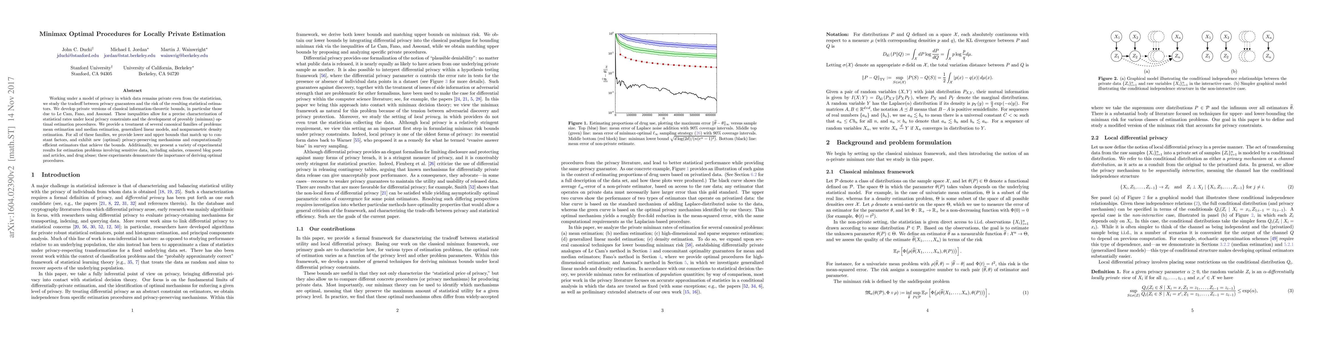 This paper develops minimax optimal procedures for locally private statistical estimation under strict privacy constraints, providing both theoretical bounds and practical mechanisms for mean, median, and density estimation. Experimental results highlight the effectiveness of the proposed optimal privacy-preserving estimators on sensitive datasets.