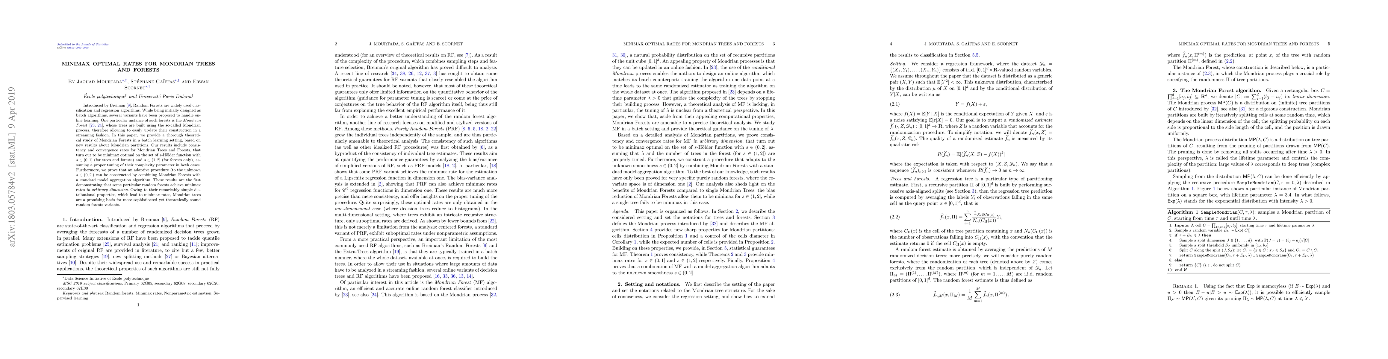 This paper investigates Mondrian Forests, a variant of Random Forests, and demonstrates their minimax optimal rates for classification and regression in batch learning settings. The authors show that Mondrian Trees and Forests achieve optimal convergence rates for $s$-Hölder functions, providing a theoretical foundation for their use in online learning scenarios.