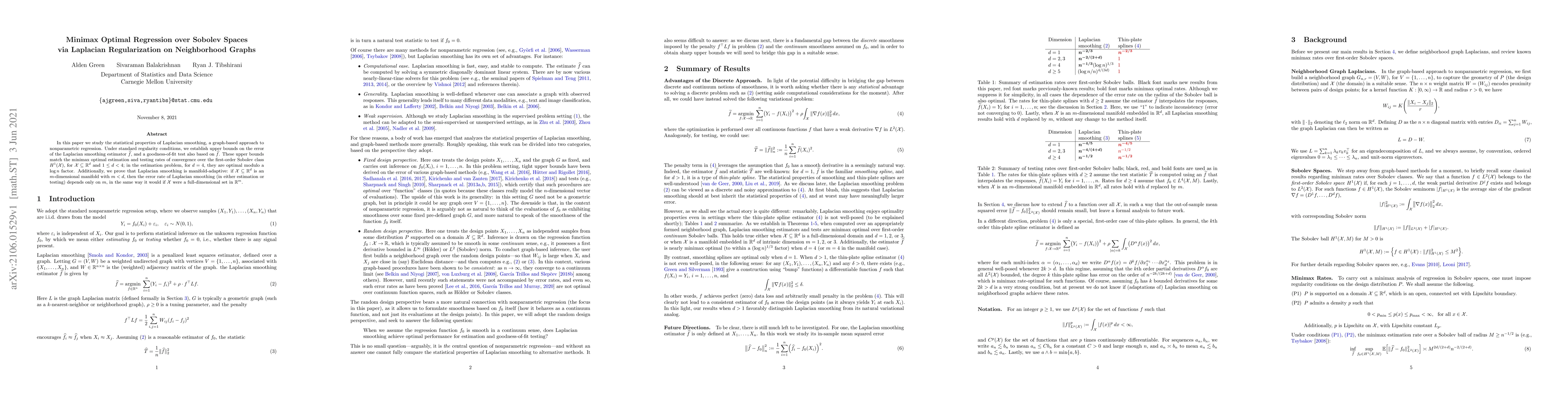 This paper investigates the Laplacian smoothing method for nonparametric regression over Sobolev spaces, demonstrating that it achieves minimax optimal rates of convergence for estimation and testing in low-dimensional settings. It also proves the method's manifold-adaptiveness, showing error rates depend on the intrinsic dimension of the underlying manifold.