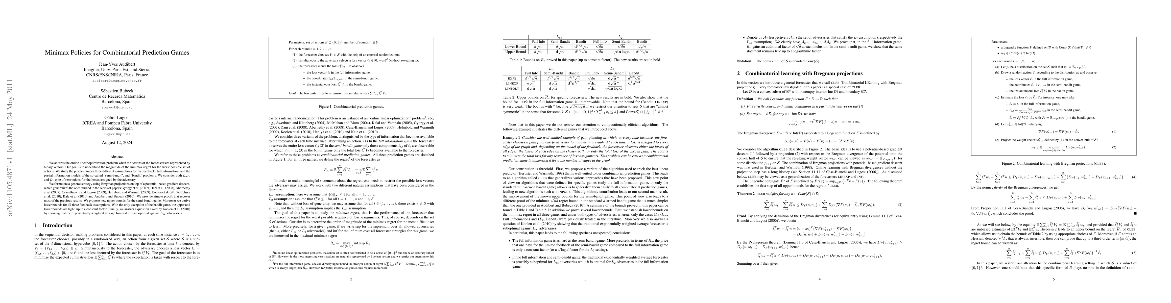 We address the online linear optimization problem when the actions of the forecaster are represented by binary vectors. Our goal is to understand the magnitude of the minimax regret for the worst possible set of actions. We study the problem under three different assumptions for the feedback: full information, and the partial information models of the so-called "semi-bandit", and "bandit" problems. We consider both $L_\infty$-, and $L_2$-type of restrictions for the losses assigned by the adversary. We formulate a general strategy using Bregman projections on top of a potential-based gradient descent, which generalizes the ones studied in the series of papers Gyorgy et al. (2007), Dani et al. (2008), Abernethy et al. (2008), Cesa-Bianchi and Lugosi (2009), Helmbold and Warmuth (2009), Koolen et al. (2010), Uchiya et al. (2010), Kale et al. (2010) and Audibert and Bubeck (2010). We provide simple proofs that recover most of the previous results. We propose new upper bounds for the semi-bandit game. Moreover we derive lower bounds for all three feedback assumptions. With the only exception of the bandit game, the upper and lower bounds are tight, up to a constant factor. Finally, we answer a question asked by Koolen et al. (2010) by showing that the exponentially weighted average forecaster is suboptimal against $L_{\infty}$ adversaries.