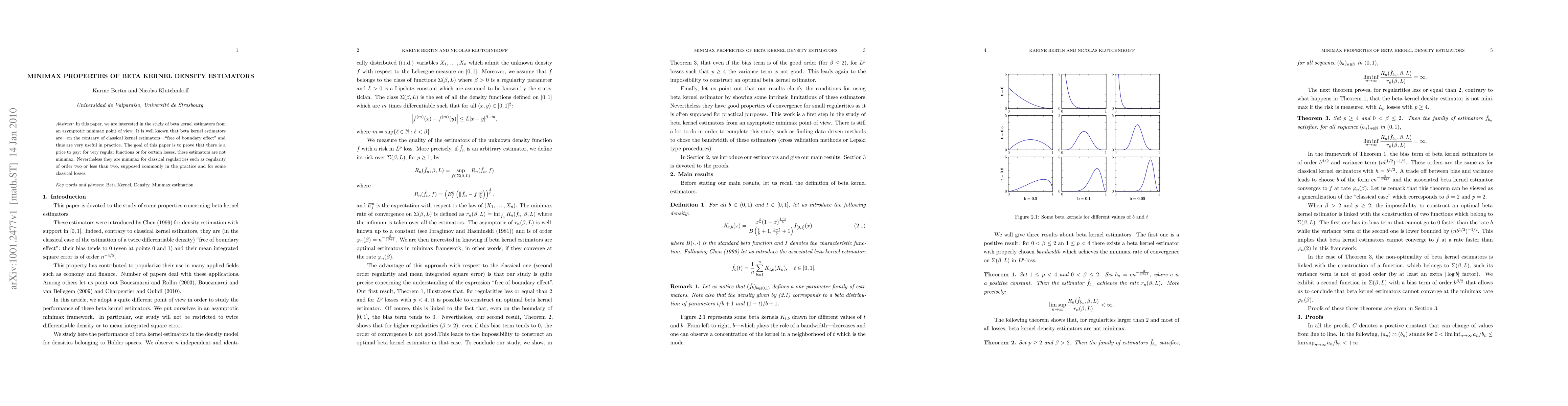 This paper explores the asymptotic minimax properties of beta kernel density estimators, highlighting their boundary effect-free nature. It finds that while these estimators are minimax for common regularities and losses, they fail to be minimax for very regular functions or specific losses.