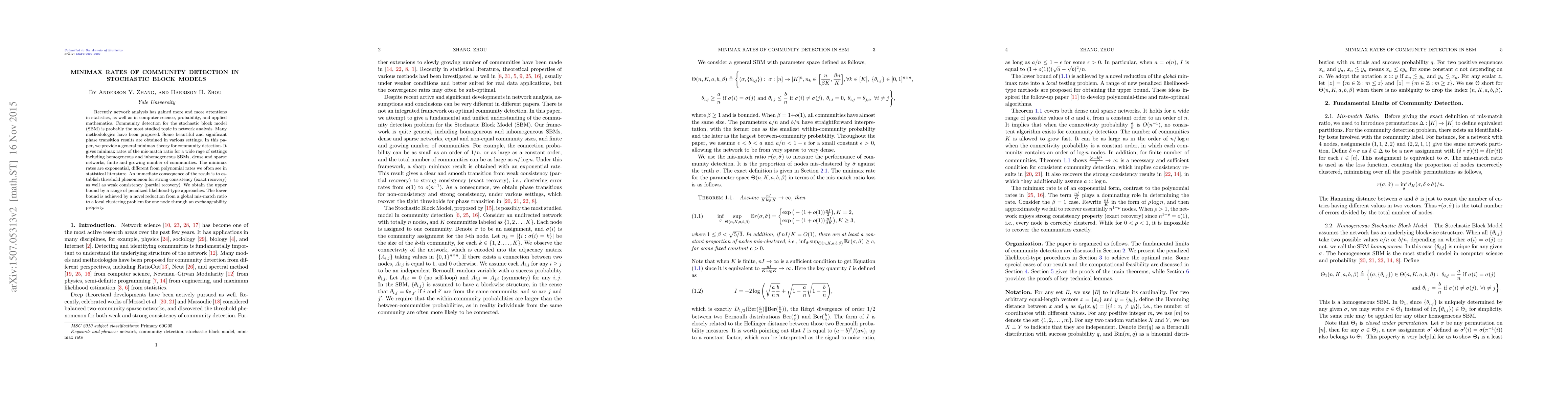 This paper develops a comprehensive minimax theory for community detection in stochastic block models, revealing exponential minimax rates that differ from typical polynomial rates. It establishes threshold phenomena for both strong and weak consistency, with upper bounds derived from penalized likelihood methods and lower bounds via a novel reduction technique.