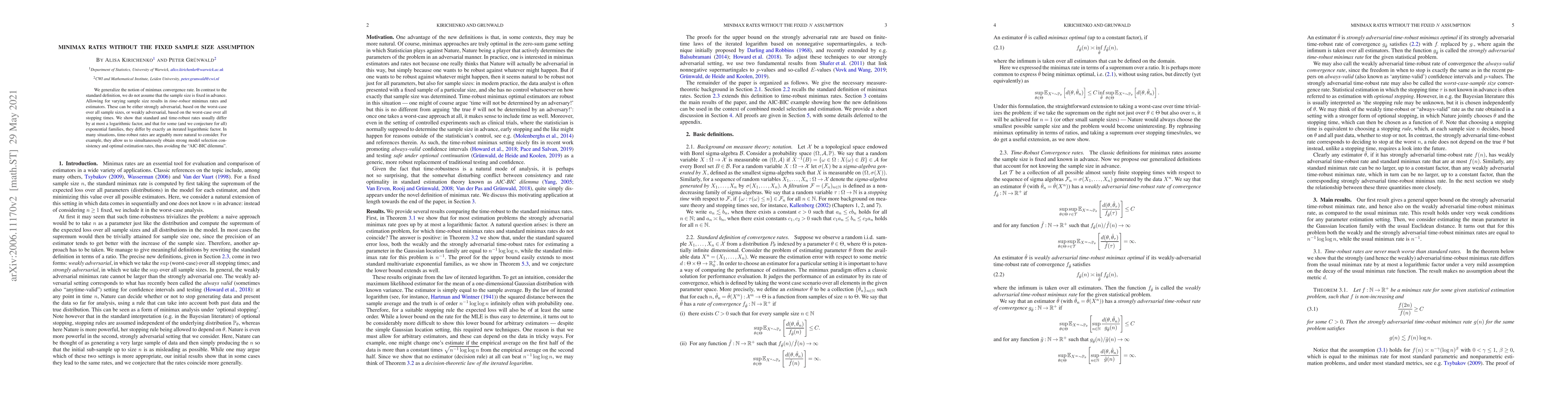 This paper generalizes the concept of minimax convergence rates by removing the fixed sample size assumption, leading to time-robust rates. It shows that these rates can differ by at most a logarithmic factor from standard rates, and in some cases, by an iterated logarithmic factor, offering a more natural approach for model selection and estimation.