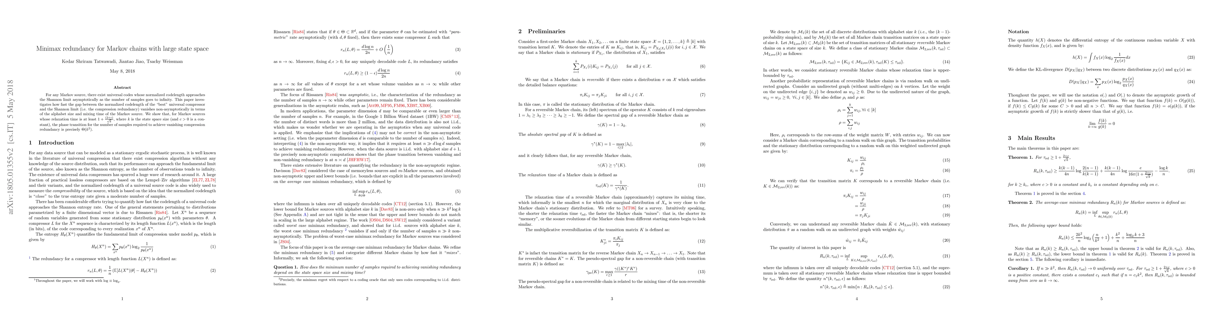 This research explores how quickly the gap between universal compressors' performance and the Shannon limit (compression redundancy) narrows for Markov sources. It demonstrates that for Markov sources with a mixing time of at least $1 + rac{(2+c)}{sqrt{k}}$, where $k$ is the state space size and $c>0$ is a constant, the critical sample size to achieve negligible compression redundancy is $Theta(k^2)$.