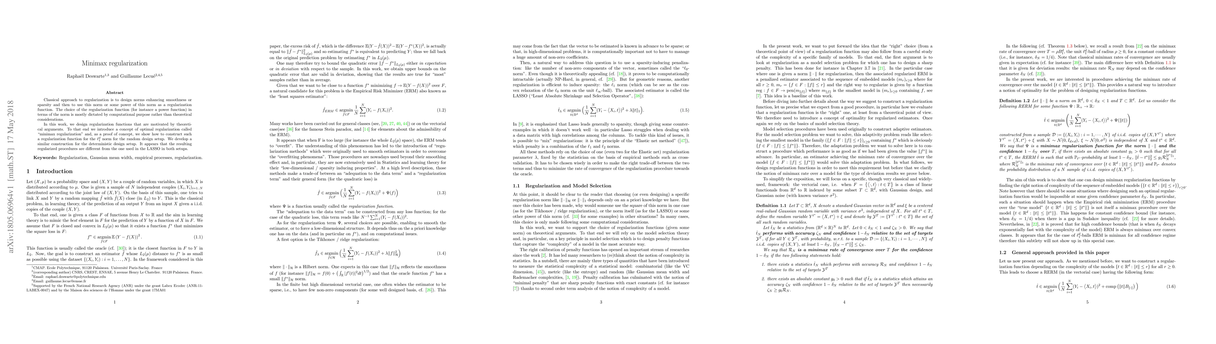 Researchers introduce a new approach to regularization called minimax regularization, which aims to balance smoothness and sparsity through theoretical arguments rather than computational convenience. This method produces different results from existing LASSO procedures in both random and deterministic design setups.