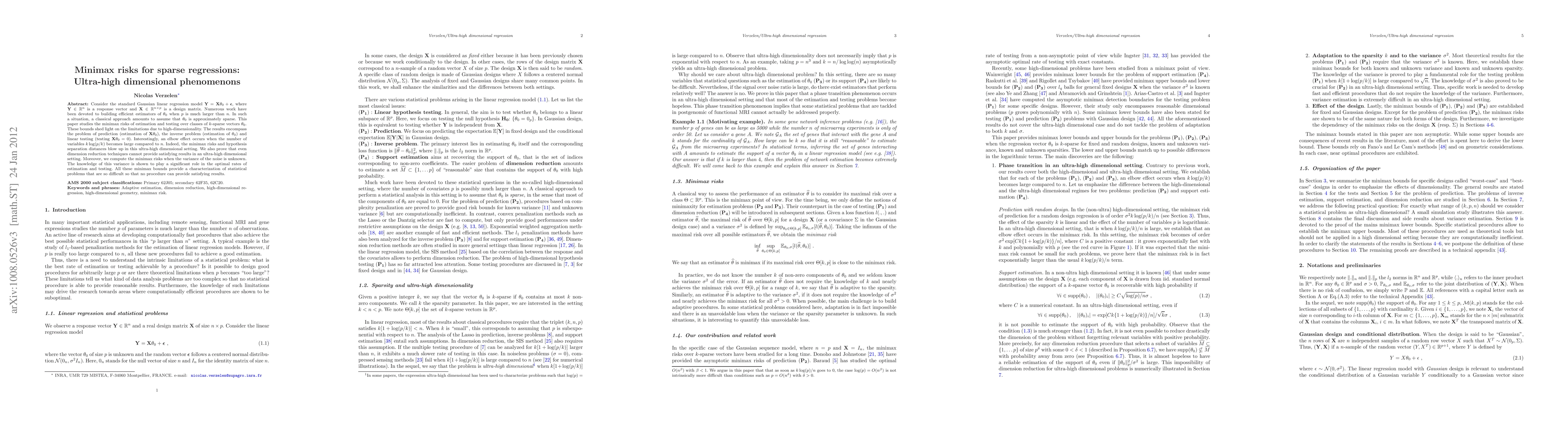 This paper investigates the minimax risks for estimating and testing sparse vectors in ultra-high-dimensional Gaussian linear regression models, revealing an "elbow effect" where the minimax risks increase dramatically when the number of variables exceeds a certain threshold relative to the sample size. It highlights the limitations of dimension reduction techniques in such settings.