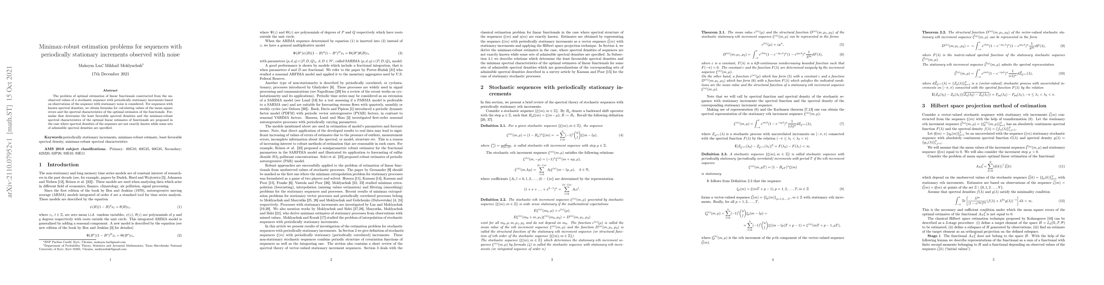 This paper addresses optimal estimation of linear functionals from stochastic sequences with periodically stationary increments, observed with stationary noise. It provides formulas for mean square error and spectral characteristics of optimal estimates, and proposes minimax-robust formulas for cases where exact spectral densities are unknown but sets of admissible densities are specified.