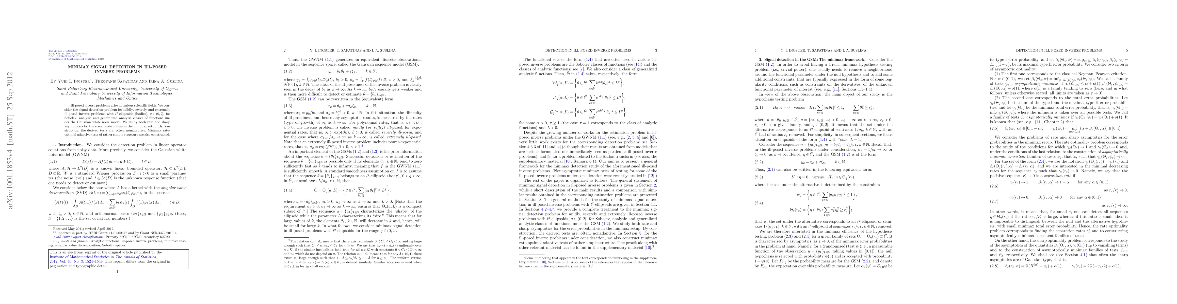 The paper presents a detailed analysis of minimax signal detection in ill-posed inverse problems, providing adaptive and nonadaptive tests with sharp asymptotic guarantees for various function classes and levels of ill-posedness.