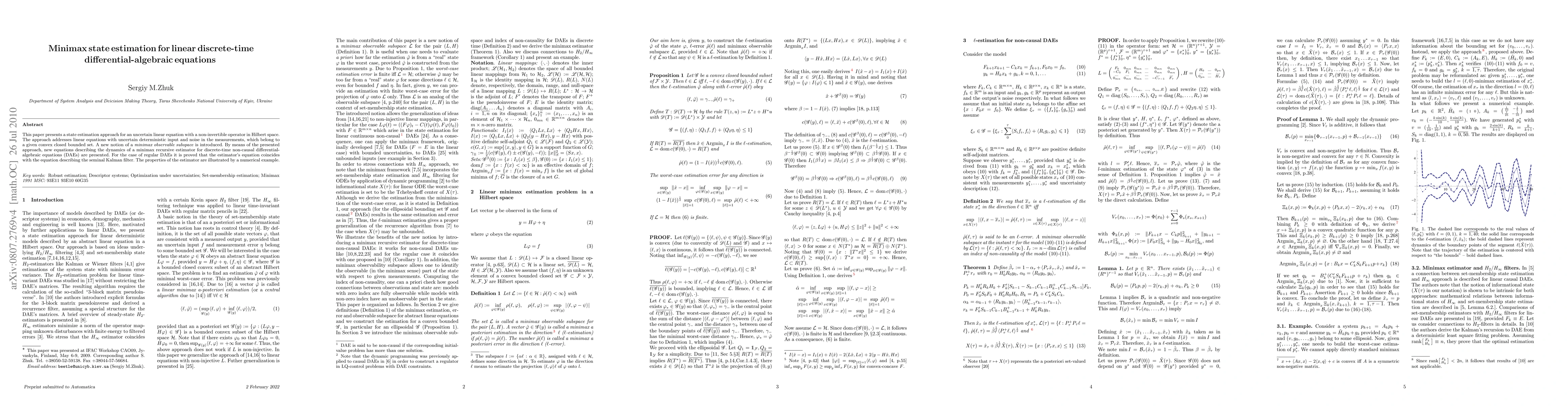 This paper presents a state estimation approach for an uncertain linear equation with a non-invertible operator in Hilbert space. The approach addresses linear equations with uncertain deterministic input and noise in the measurements, which belong to a given convex closed bounded set. A new notion of a minimax observable subspace is introduced. By means of the presented approach, new equations describing the dynamics of a minimax recursive estimator for discrete-time non-causal differential-algebraic equations (DAEs) are presented. For the case of regular DAEs it is proved that the estimator's equation coincides with the equation describing the seminal Kalman filter. The properties of the estimator are illustrated by a numerical example.