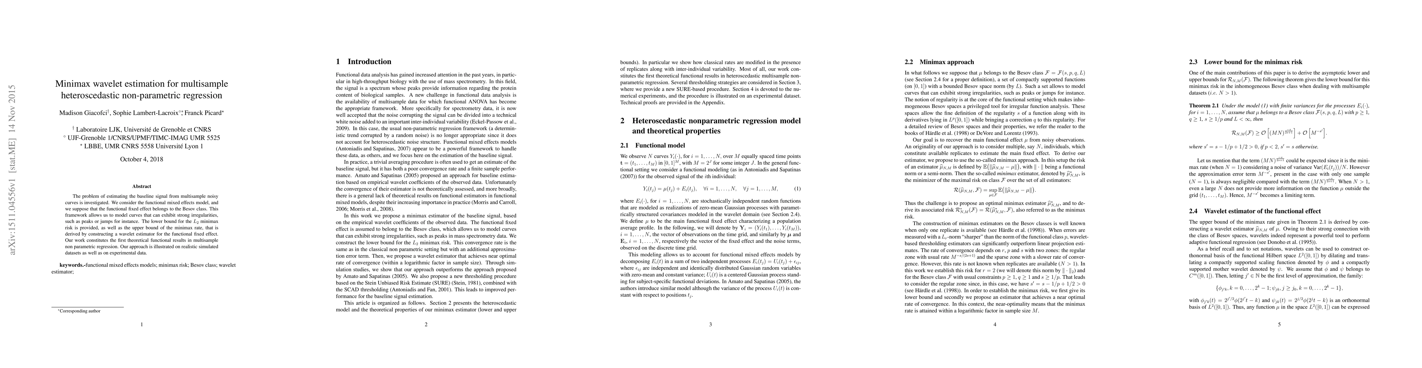 This paper develops a wavelet estimator for estimating the baseline signal in multisample heteroscedastic non-parametric regression under a functional mixed effects model. The authors provide both lower and upper bounds for the minimax risk, demonstrating the effectiveness of their approach through simulations and real data.