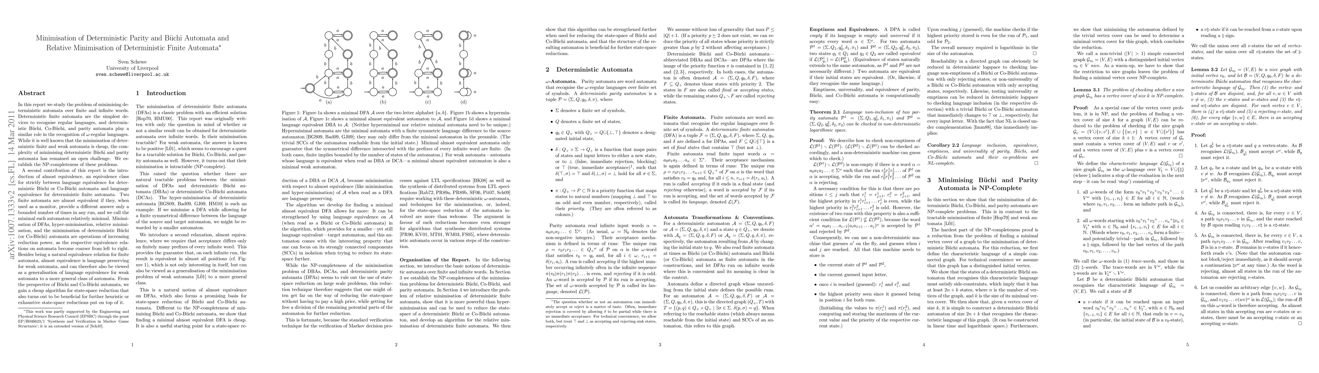 This research paper establishes the NP-completeness of minimising deterministic Buchi and parity automata, addressing an open challenge. It also introduces relaxed minimisation of deterministic finite automata, which allows for minor changes in the language, offering a more powerful minimisation technique than hyper-minimisation.