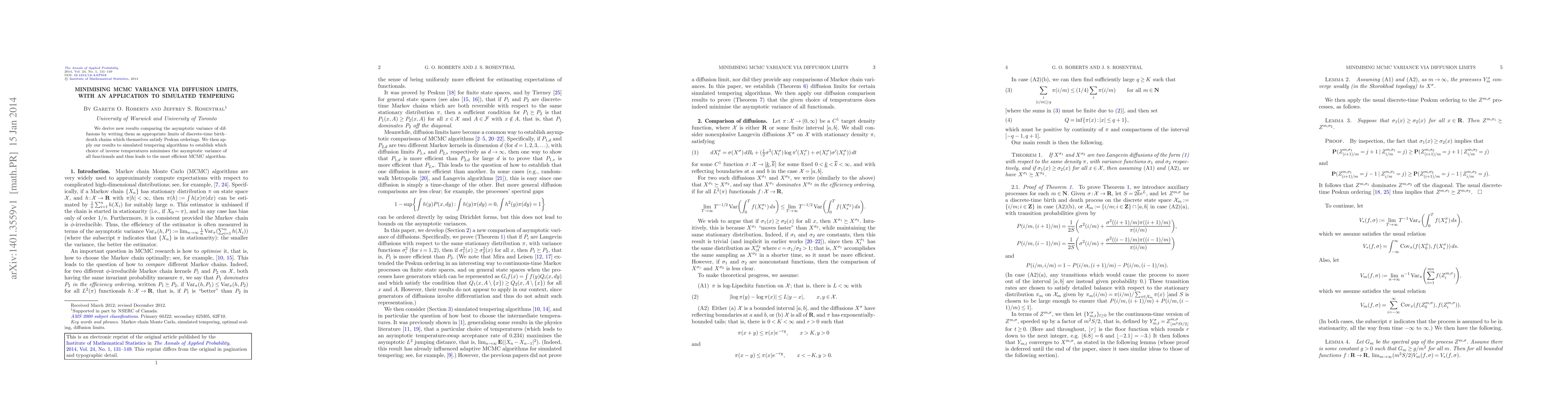 The paper uses a new method to analyze the variance of Markov Chain Monte Carlo (MCMC) algorithms, finding that certain inverse temperatures lead to more efficient algorithms. It applies this result to simulated tempering algorithms to minimize asymptotic variance.