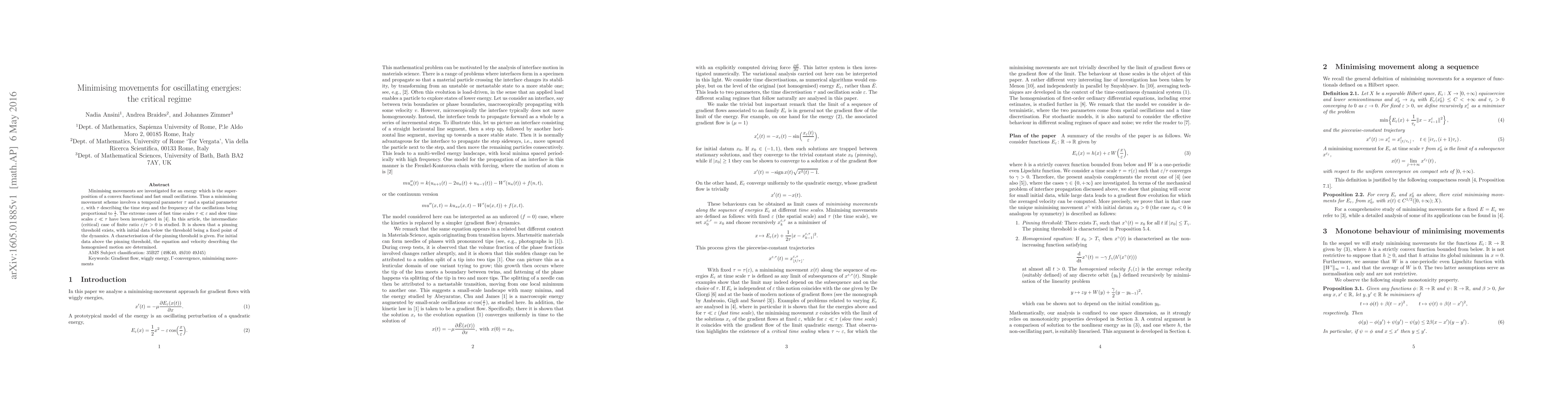 Minimising movements are investigated for an energy which is the superposition of a convex functional and fast small oscillations. Thus a minimising movement scheme involves a temporal parameter $\tau$ and a spatial parameter $\epsilon$, with $\tau$ describing the time step and the frequency of the oscillations being proportional to $\frac 1 \epsilon$. The extreme cases of fast time scales $\tau << \epsilon$ and slow time scales $\epsilon << \tau$ have been investigated in Braides, Springer Lecture Notes 2094 (2014). In this article, the intermediate (critical) case of finite ratio $\epsilon/\tau>0$ is studied. It is shown that a pinning threshold exists, with initial data below the threshold being a fixed point of the dynamics. A characterisation of the pinning threshold is given. For initial data above the pinning threshold, the equation and velocity describing the homogenised motion are determined.