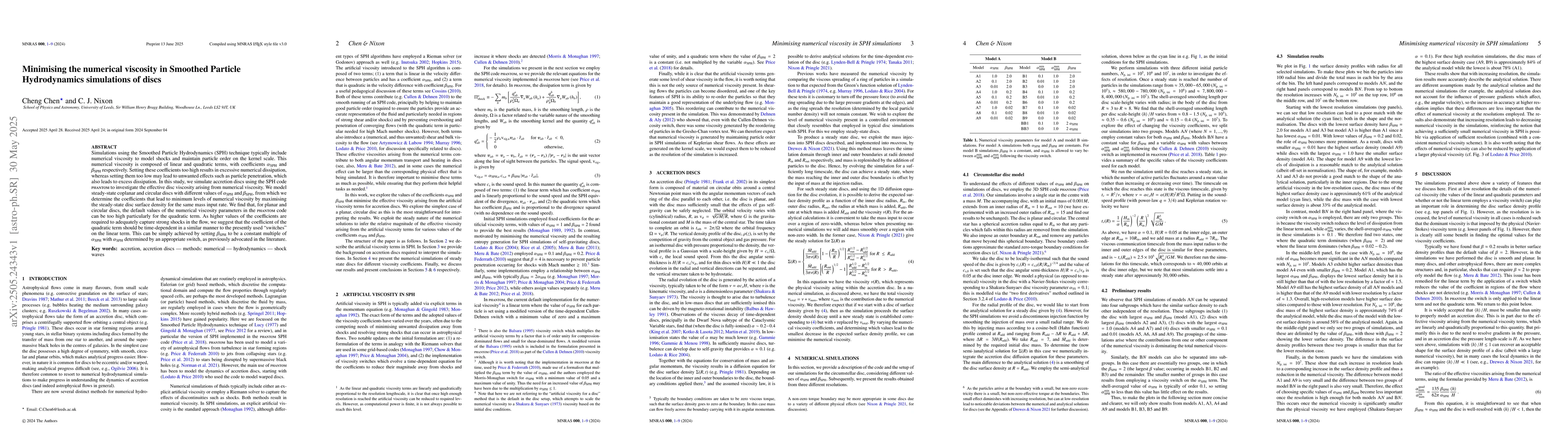 Researchers investigated how to reduce numerical viscosity in Smoothed Particle Hydrodynamics simulations of discs, finding that the quadratic term can be too high and suggesting a time-dependent approach to mitigate this.