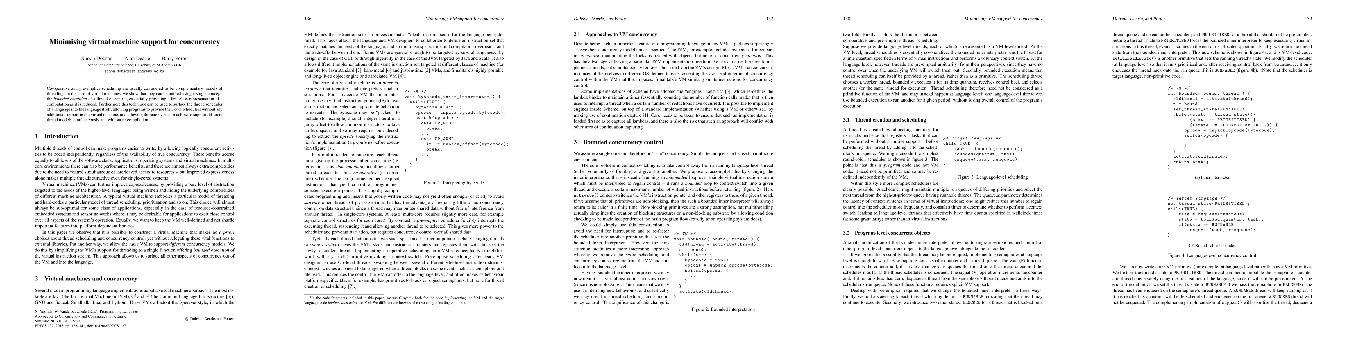 This paper proposes unifying co-operative and pre-emptive scheduling in virtual machines through bounded execution of threads, enabling language-level schedulers without VM support and allowing simultaneous support for different threading models without recompilation.