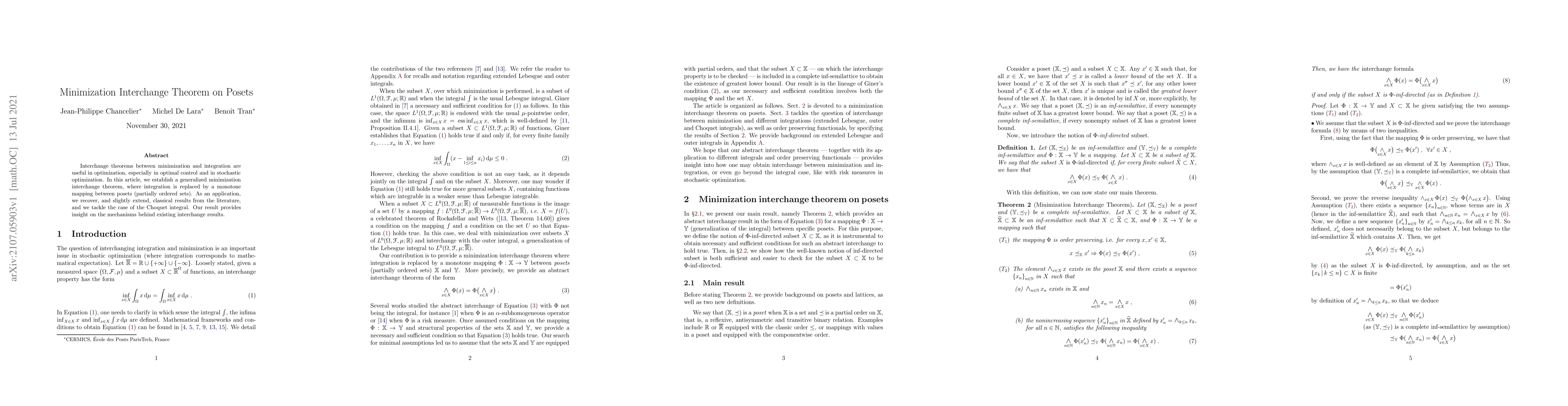 This paper establishes a generalized minimization interchange theorem for posets, replacing integration with a monotone mapping. It extends classical results and applies the theorem to the Choquet integral, offering insights into the underlying mechanisms of interchange results.