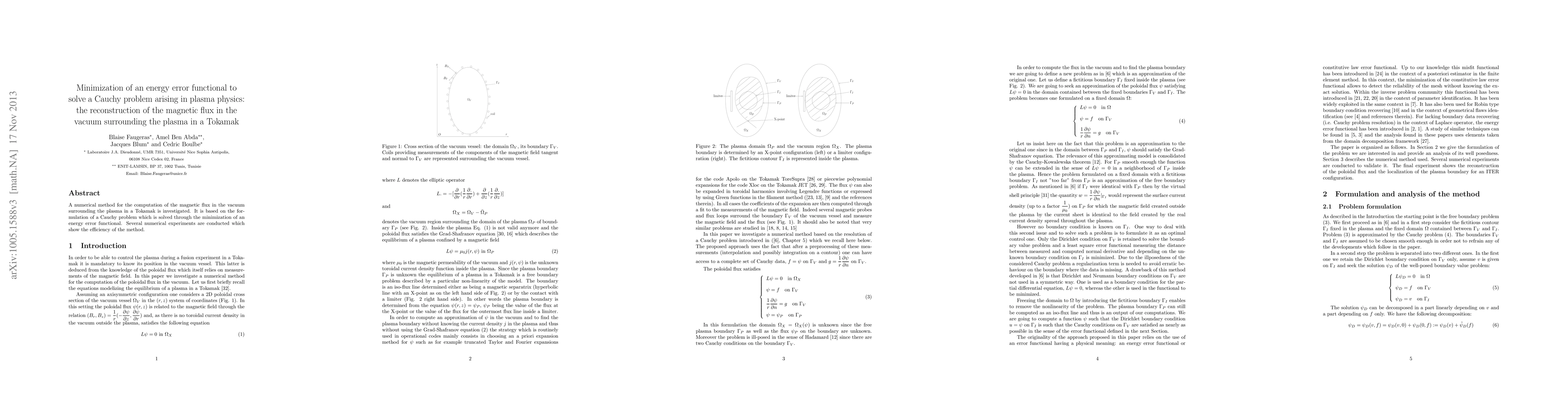 A numerical method for the computation of the magnetic flux in the vacuum surrounding the plasma in a Tokamak is investigated. It is based on the formulation of a Cauchy problem which is solved through the minimization of an energy error functional. Several numerical experiments are conducted which show the efficiency of the method.