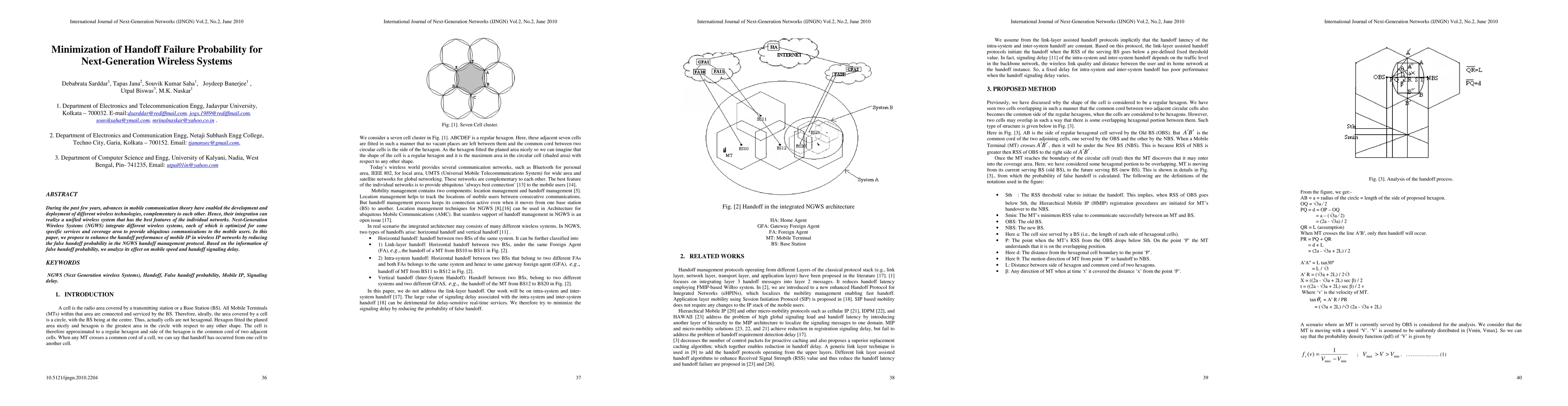 This paper proposes methods to minimize handoff failure probability in Next-Generation Wireless Systems (NGWS) by reducing false handoff probability in mobile IP networks. It analyzes the impact of false handoff on mobile speed and handoff signaling delay to improve overall handoff performance.