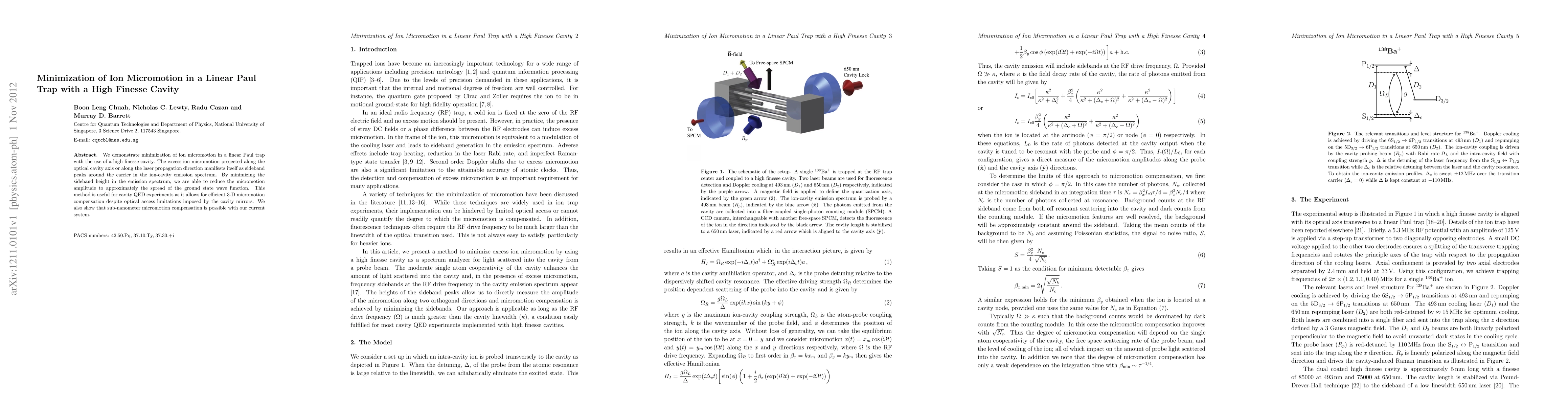 This paper demonstrates a method to minimize ion micromotion in a linear Paul trap using a high finesse cavity, achieving micromotion reduction to near ground state wave function levels. The technique is beneficial for cavity QED experiments, enabling efficient 3-D micromotion compensation despite optical access constraints.