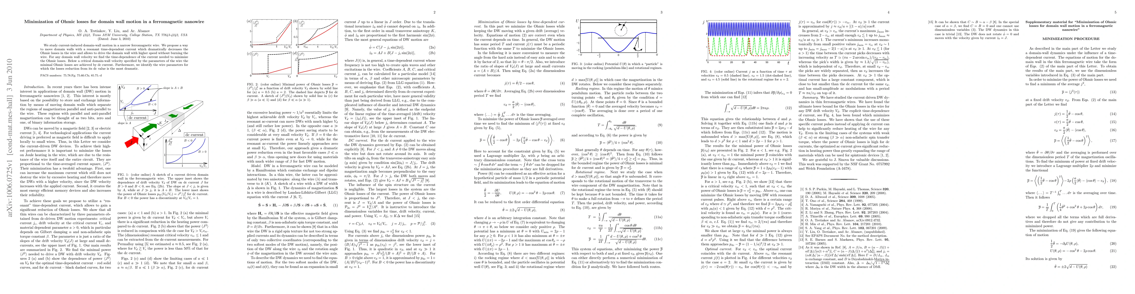 Researchers developed a method to minimize Ohmic losses in ferromagnetic nanowires for domain wall motion, allowing for higher speed movement without overheating the wire.