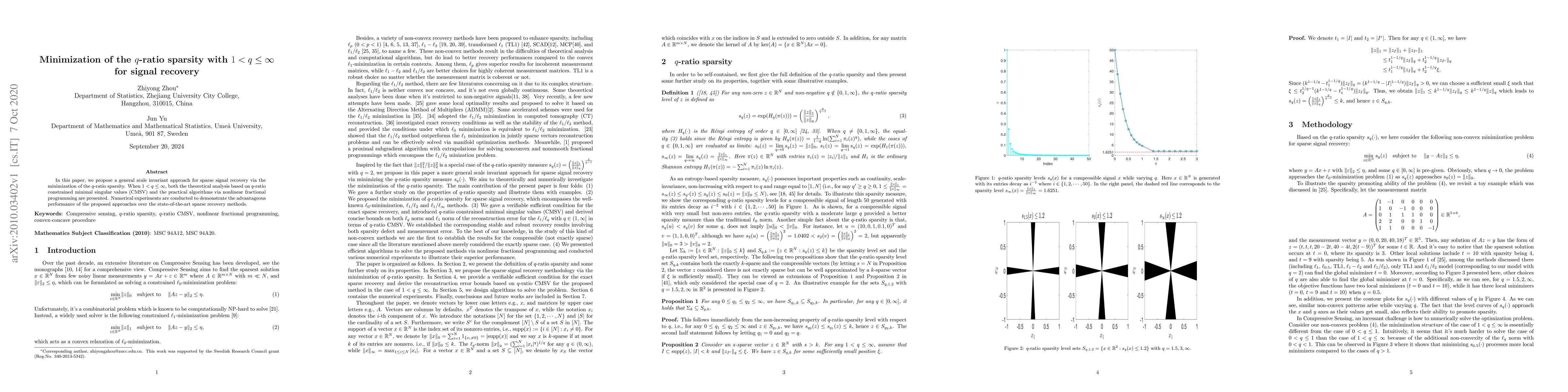 This paper introduces a scale-invariant method for sparse signal recovery by minimizing $q$-ratio sparsity for $1 < q \leq \infty$, supported by theoretical analysis and practical algorithms. Numerical experiments show superior performance compared to existing sparse recovery techniques.
