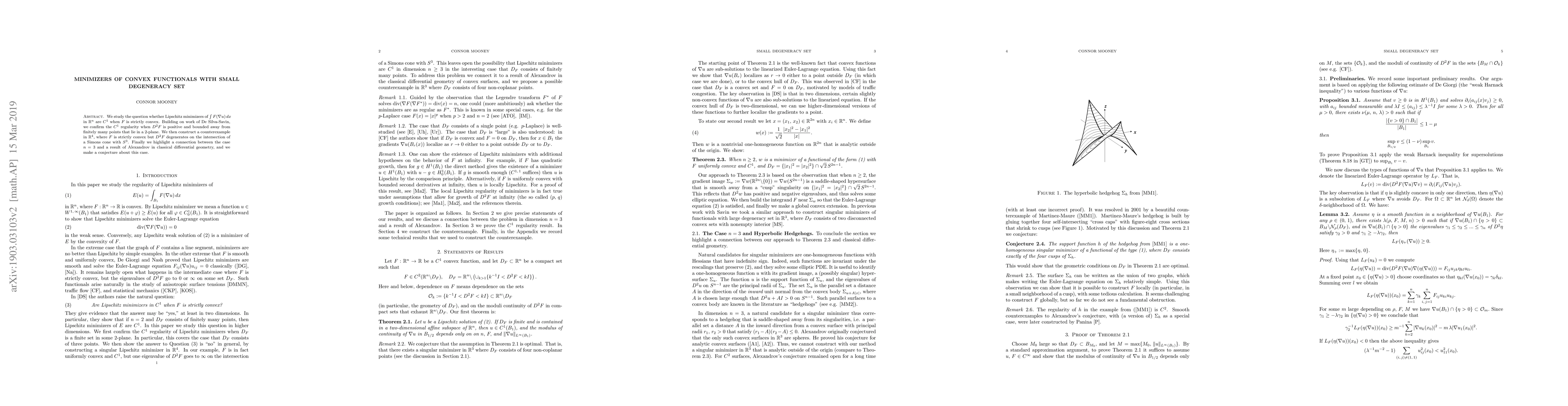 Researchers investigate the regularity of minimizers of convex functionals in n-dimensional space when the Hessian matrix of the functional is strictly convex but has a small degeneracy set, confirming C^1 regularity under certain conditions and constructing a counterexample.