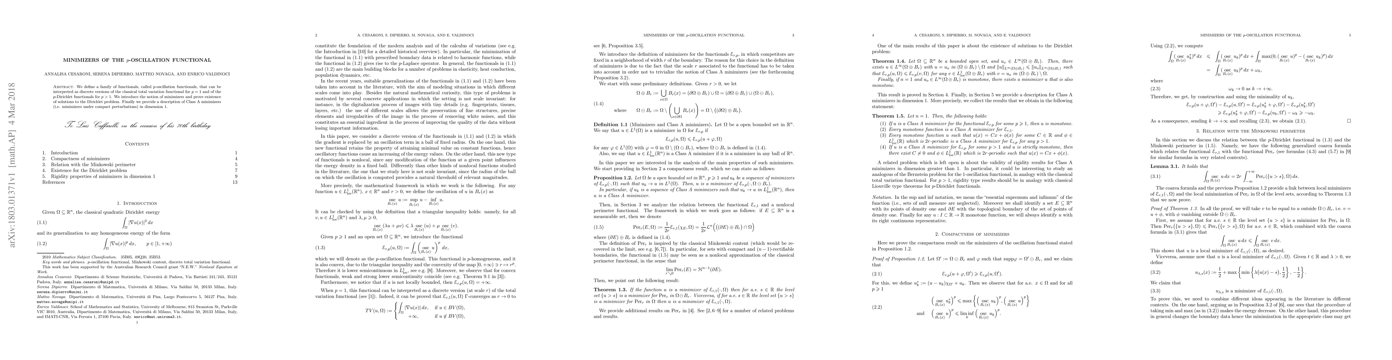 This paper defines p-oscillation functionals, discrete versions of total variation and p-Dirichlet functionals, and proves the existence of solutions for the Dirichlet problem. It also describes Class A minimizers in dimension 1 under compact perturbations.